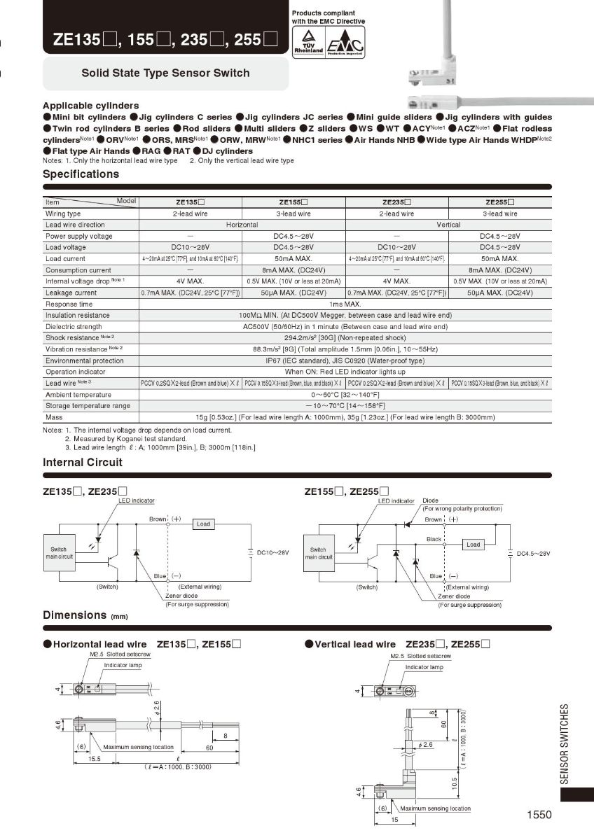 KOGANEI LED'li ZE135 ZE155 ZE235 ZE255 Piston Silindir Sensör