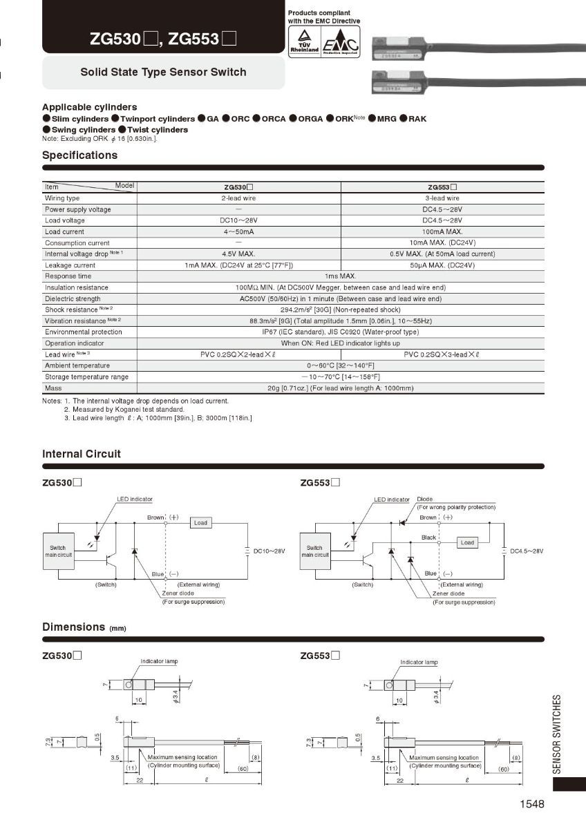 KOGANEI LED'li ZG530 ZG553 Piston Silindir Sensör