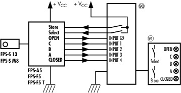 FPS sistemi, bir SCHUNK tutucunun beş çene pozisyonunu belirlemek için kullanılır. Bu amaçla, FPS sisteminin manyetik sensörü, tutucuya takılı bir mıknatısı algılar. FPS sistemi, tutucunun beş alanında öğretilebilir ve mevcut çene pozisyonunun bulunduğu alanı dijital olarak gösterir.