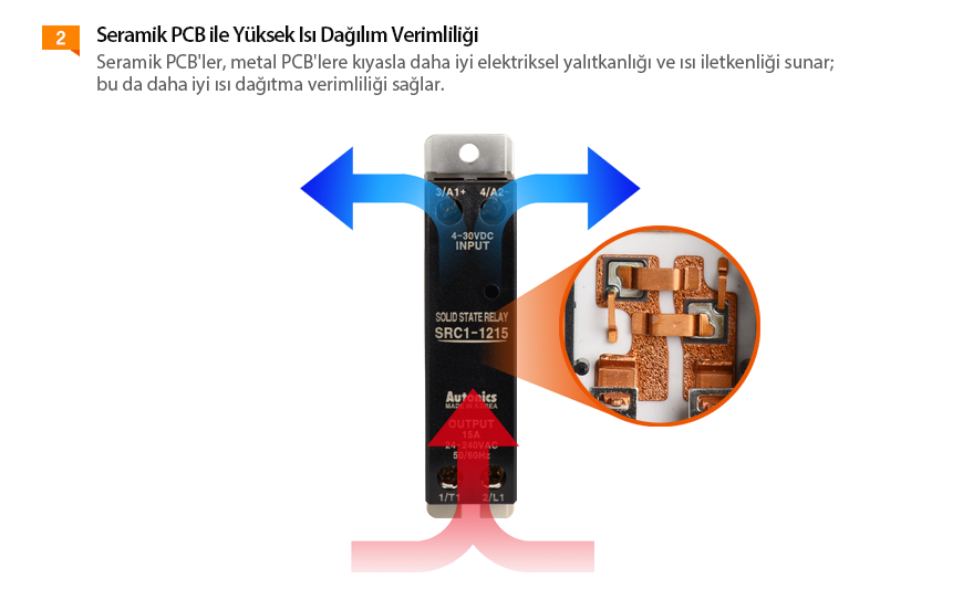 Tek fazlı katı hal röleleri SRC1 serisi, esnek kurulum için ince ve kompakt tasarım (22,5 mm genişlik) ve daha kolay bakım veya değiştirme için çıkarılabilir soğutucu özelliğine sahiptir. 4000 VAC'lik yüksek dielektrik kuvveti, ısıtıcı yükleri, yarı iletken ekipman ve motor kontrolü de dahil olmak üzere çeşitli uygulamalarda dayanıklı ve güvenilir performans sağlar.Autonics Türkiye