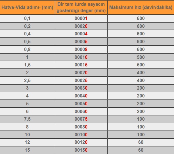 -Şaft bir tam tur attığında göstergedeki değerde oluşan artış miktarı hatveye bağlı olarak değişir.