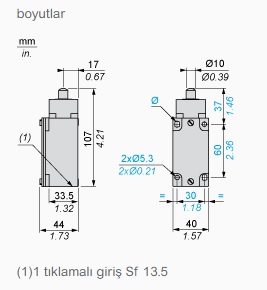 Gövde montajlı,komple, metal şalterler, 2-kutuplu NA - NK ani hareketli kontaklar,tek kablo girişli